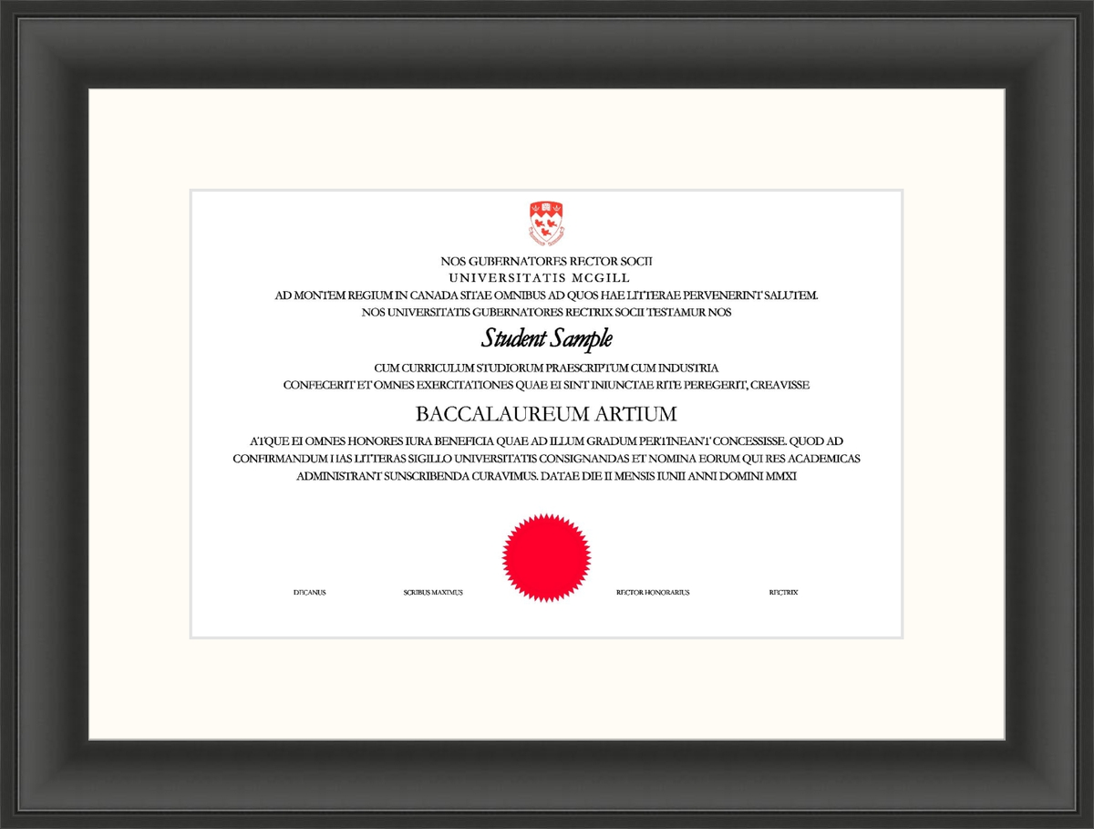 Custom McGill University Diploma Frame Black Scoop L1 McGill White