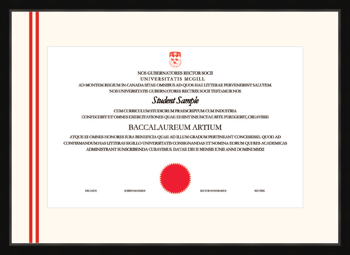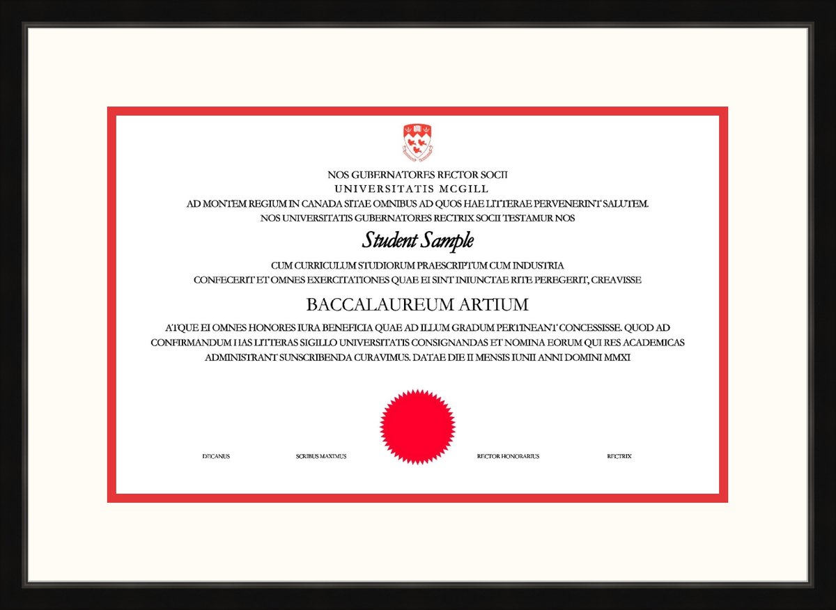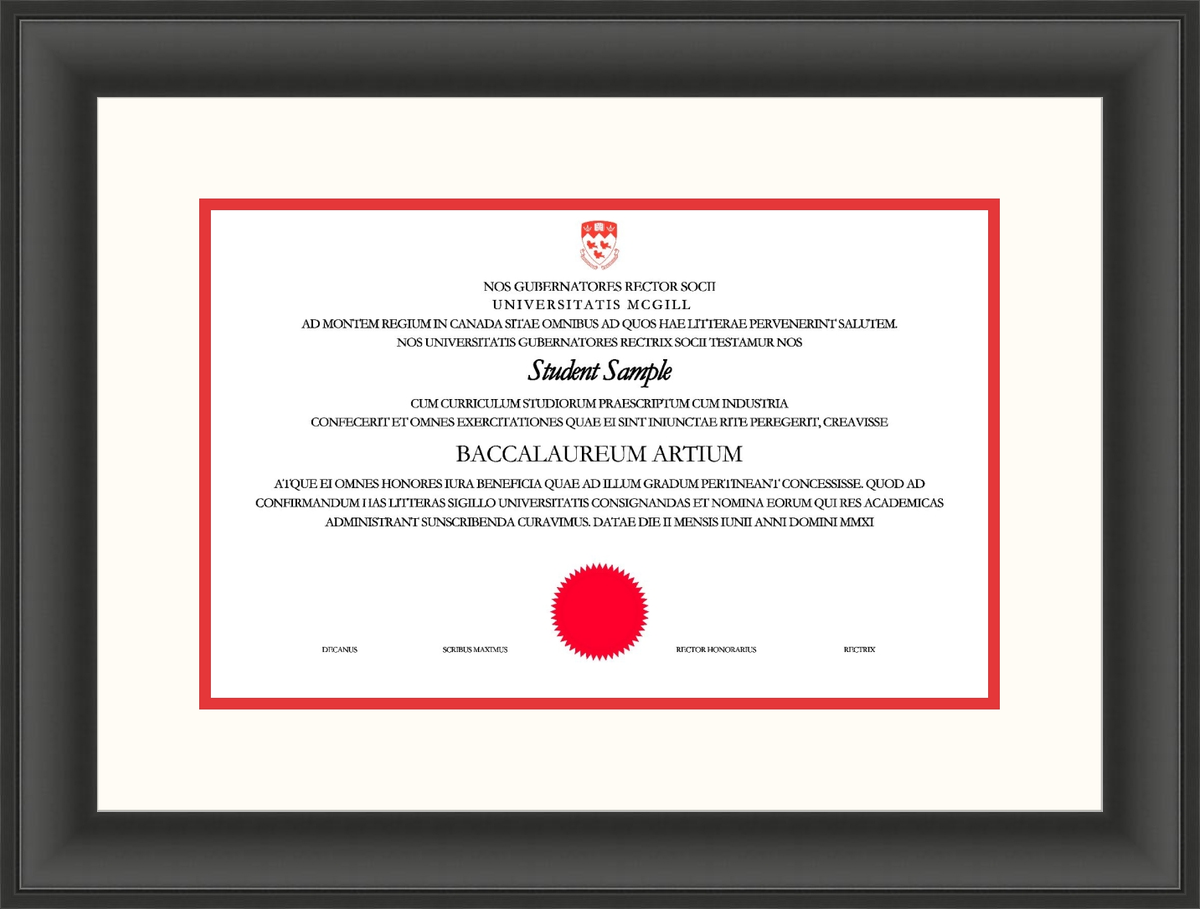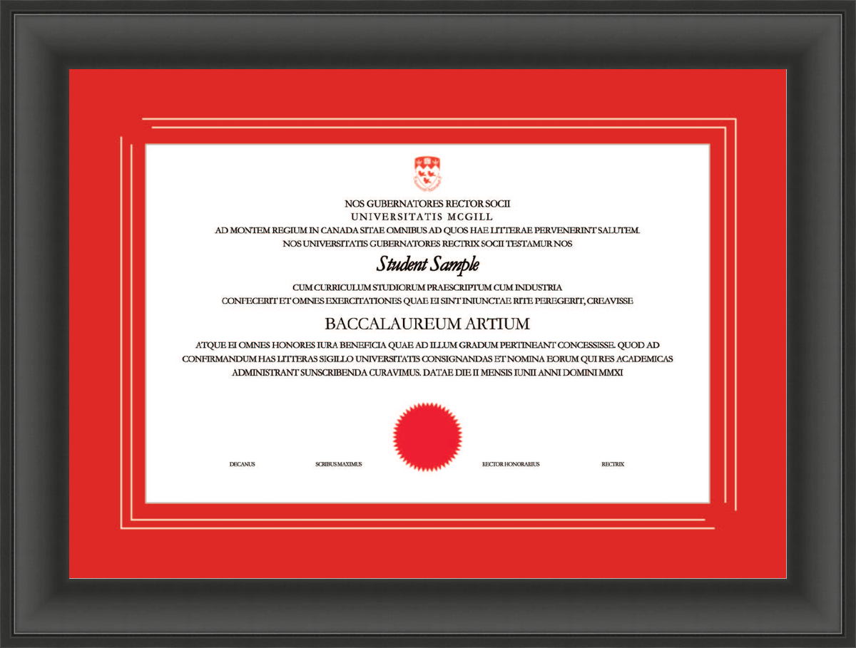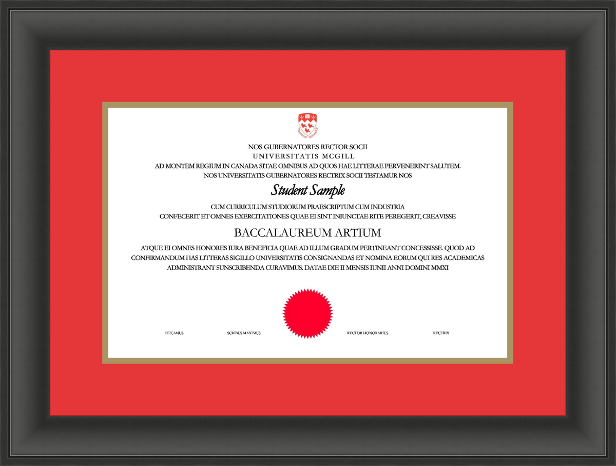 Custom McGill University Diploma Frame Black Scoop L1 McGill Red Gold