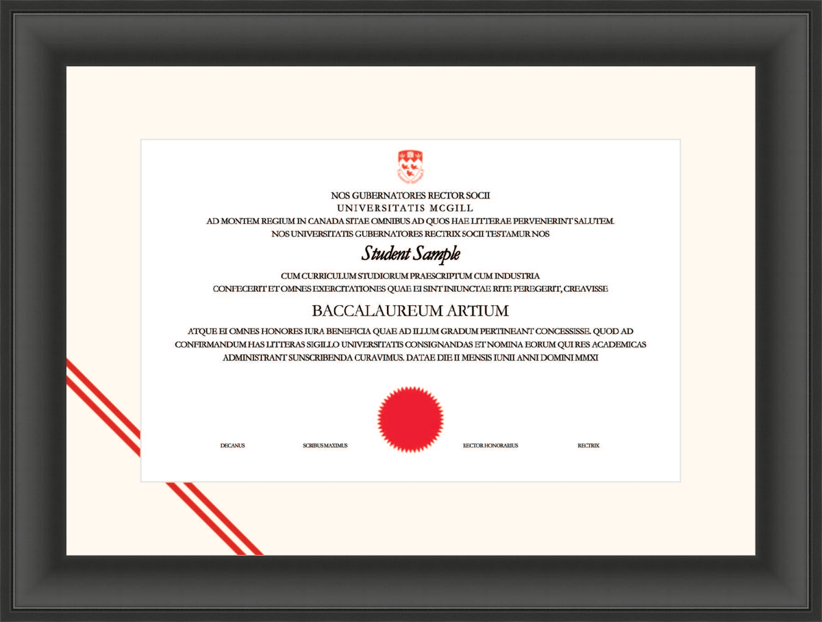 Custom McGill University Diploma Frame Black Scoop L1 McGill White Red
