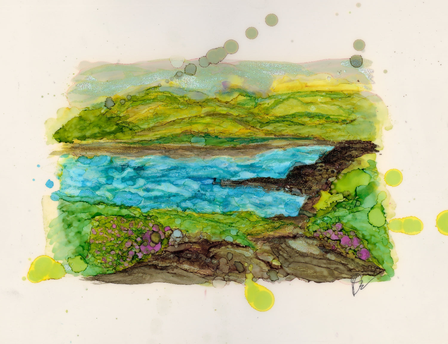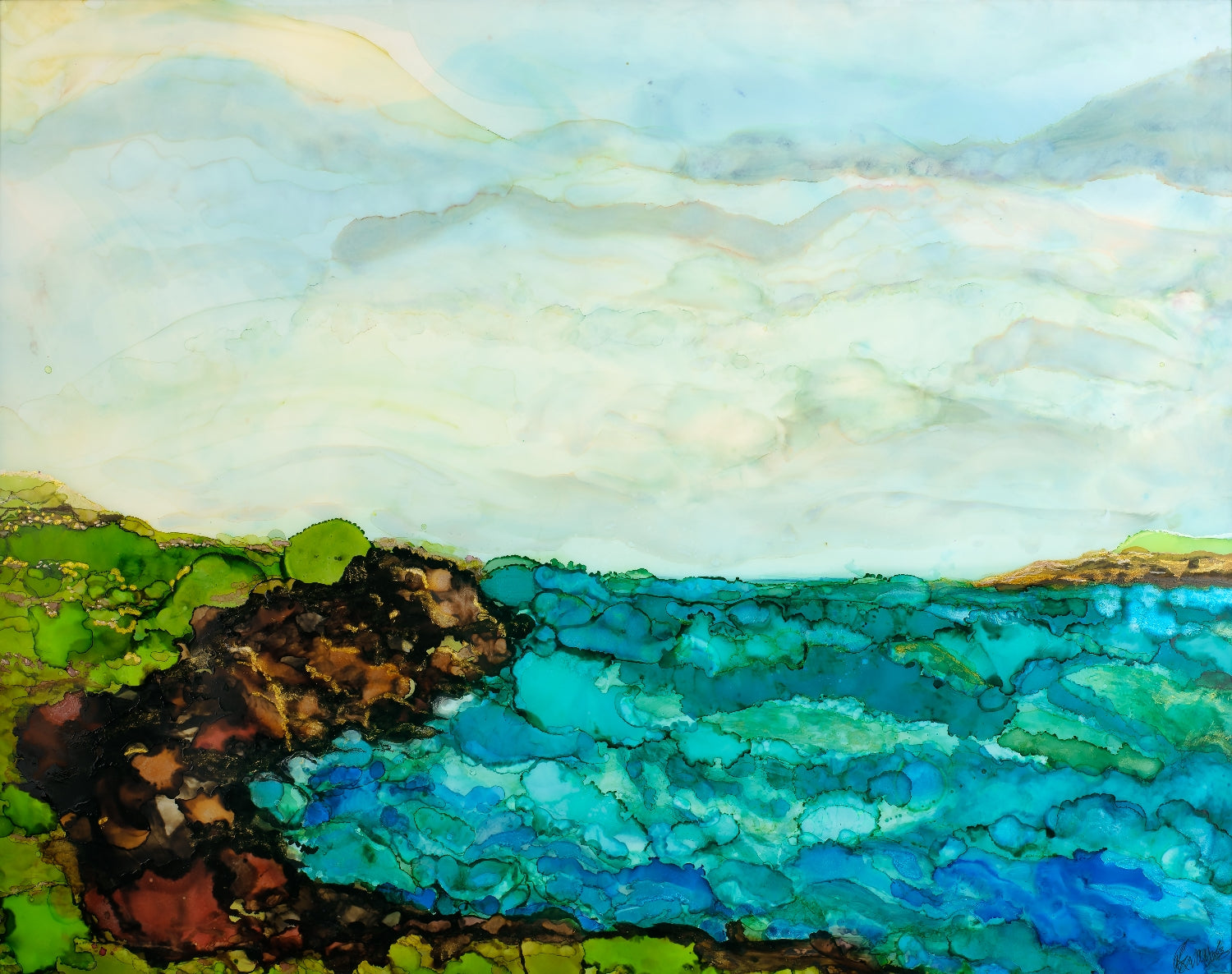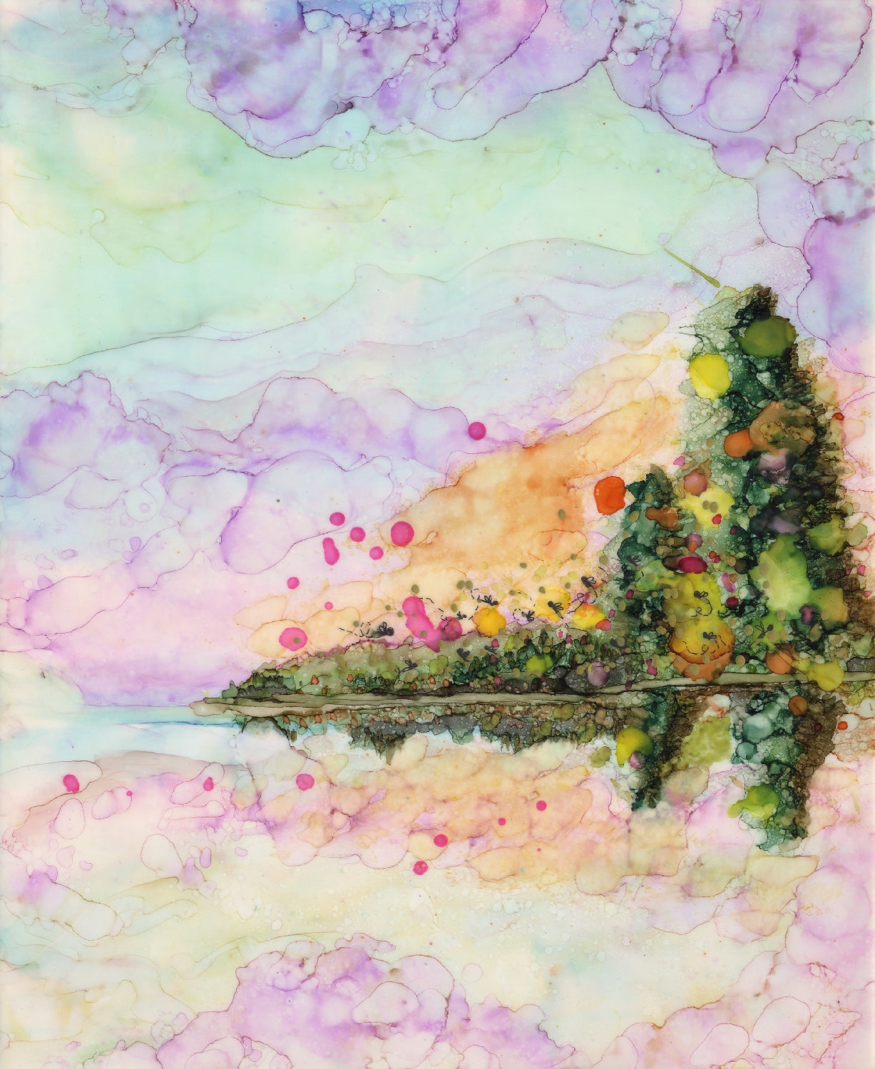 Rhonda Evans is a local artist and owner of Glocca Morra Studio. She works in a wide variety of mediums, including glass, mosiac, mixed media, and alcohol ink. Her artwork often has a more whimsical side in its use of colour and form. She draws much of her influence from Newfoundland and Ireland, where her family has roots.
