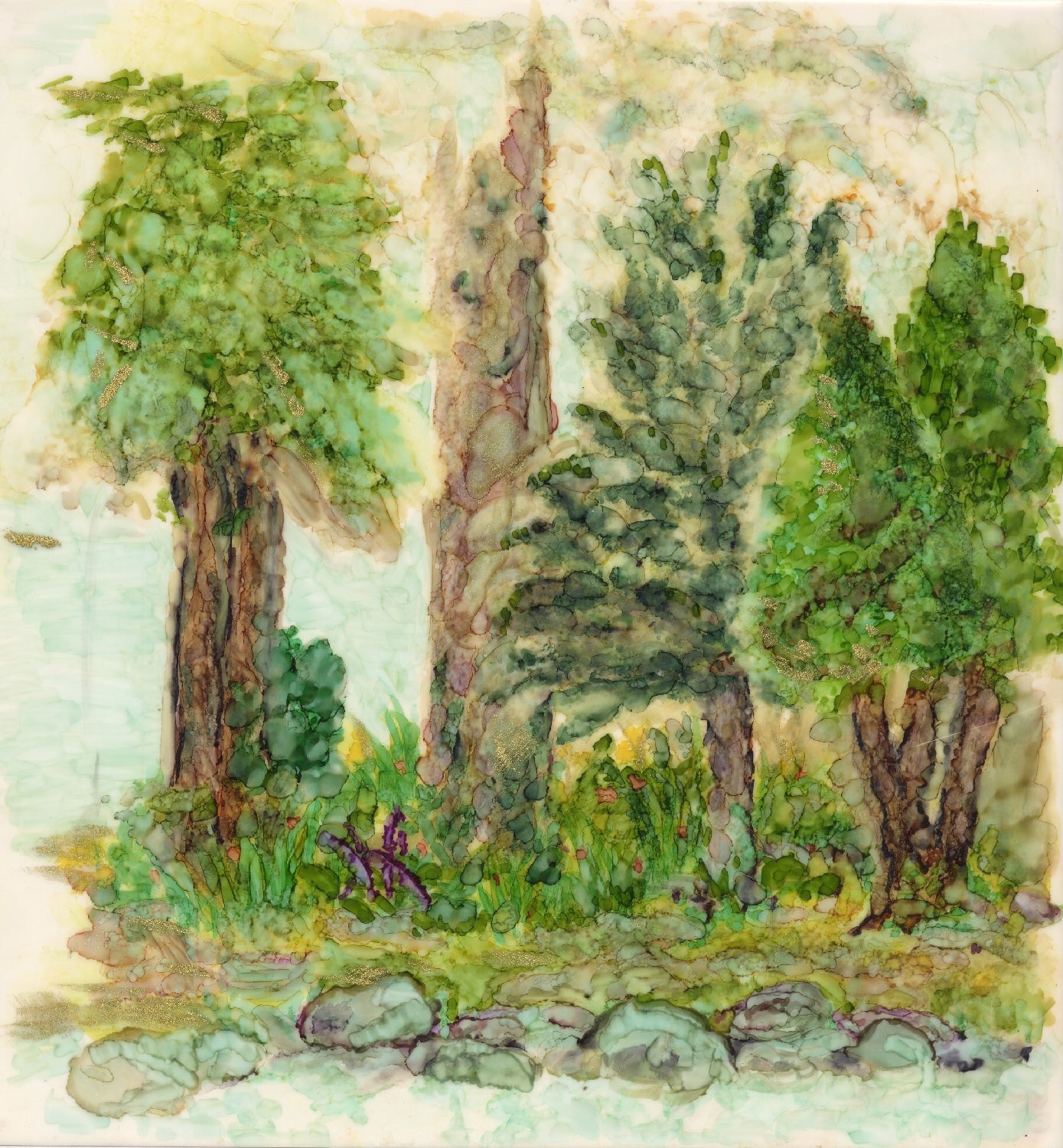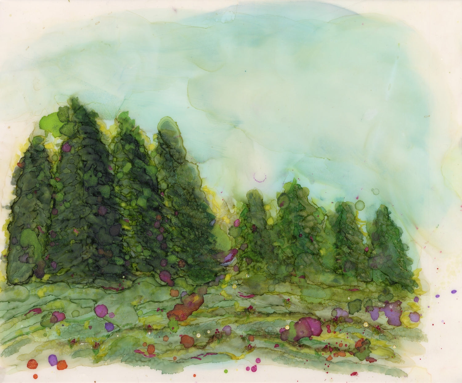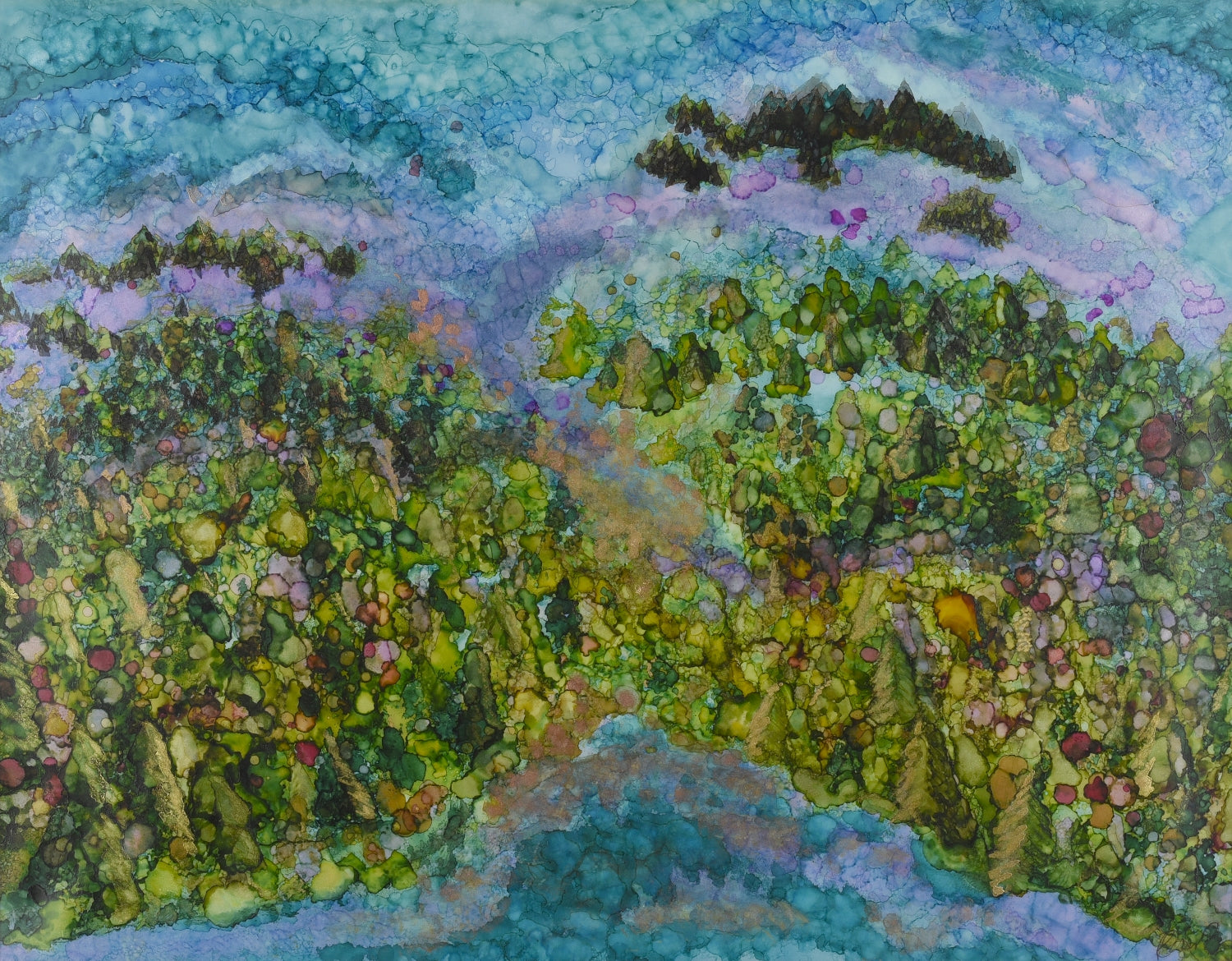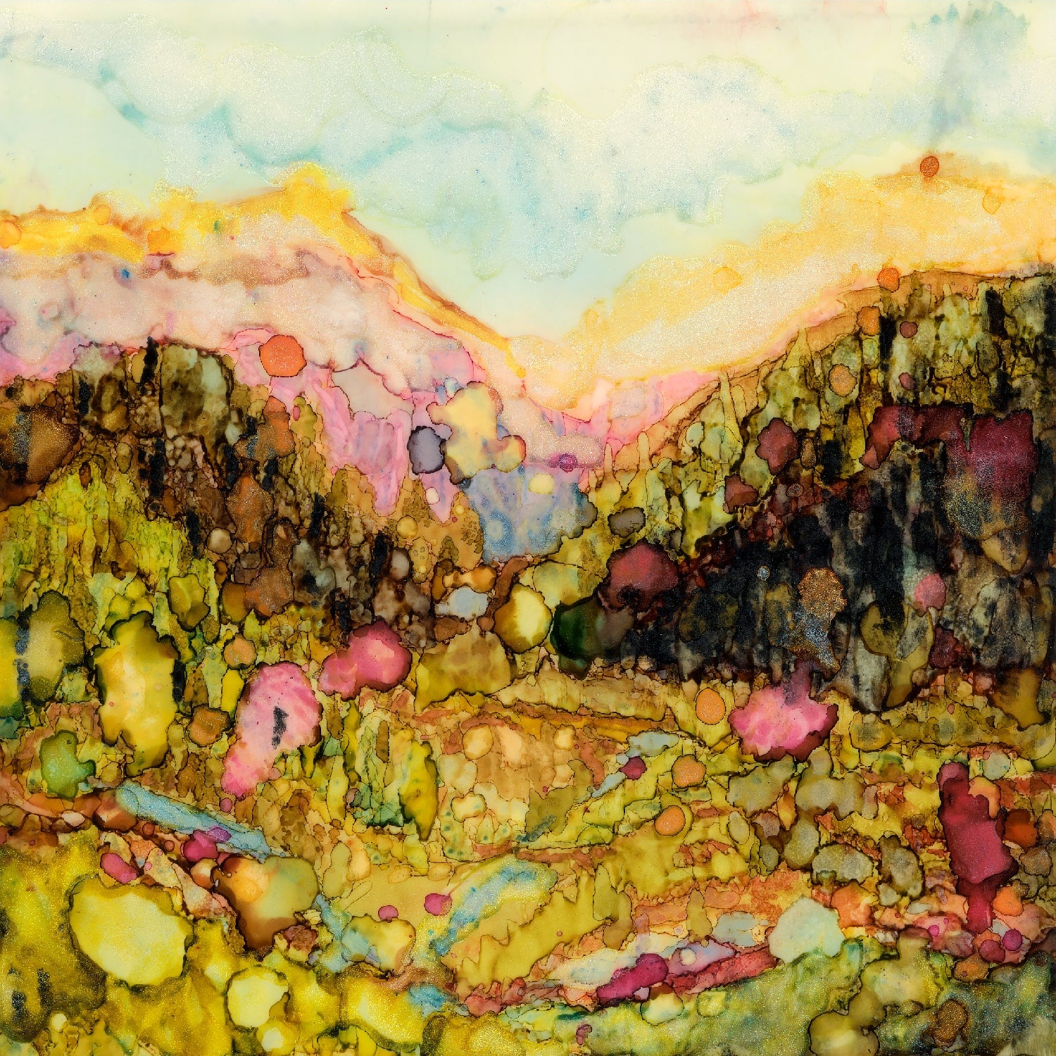 Rhonda Evans is a local artist and owner of Glocca Morra Studio. She works in a wide variety of mediums, including glass, mosiac, mixed media, and alcohol ink. Her artwork often has a more whimsical side in its use of colour and form. She draws much of her influence from Newfoundland and Ireland, where her family has roots.